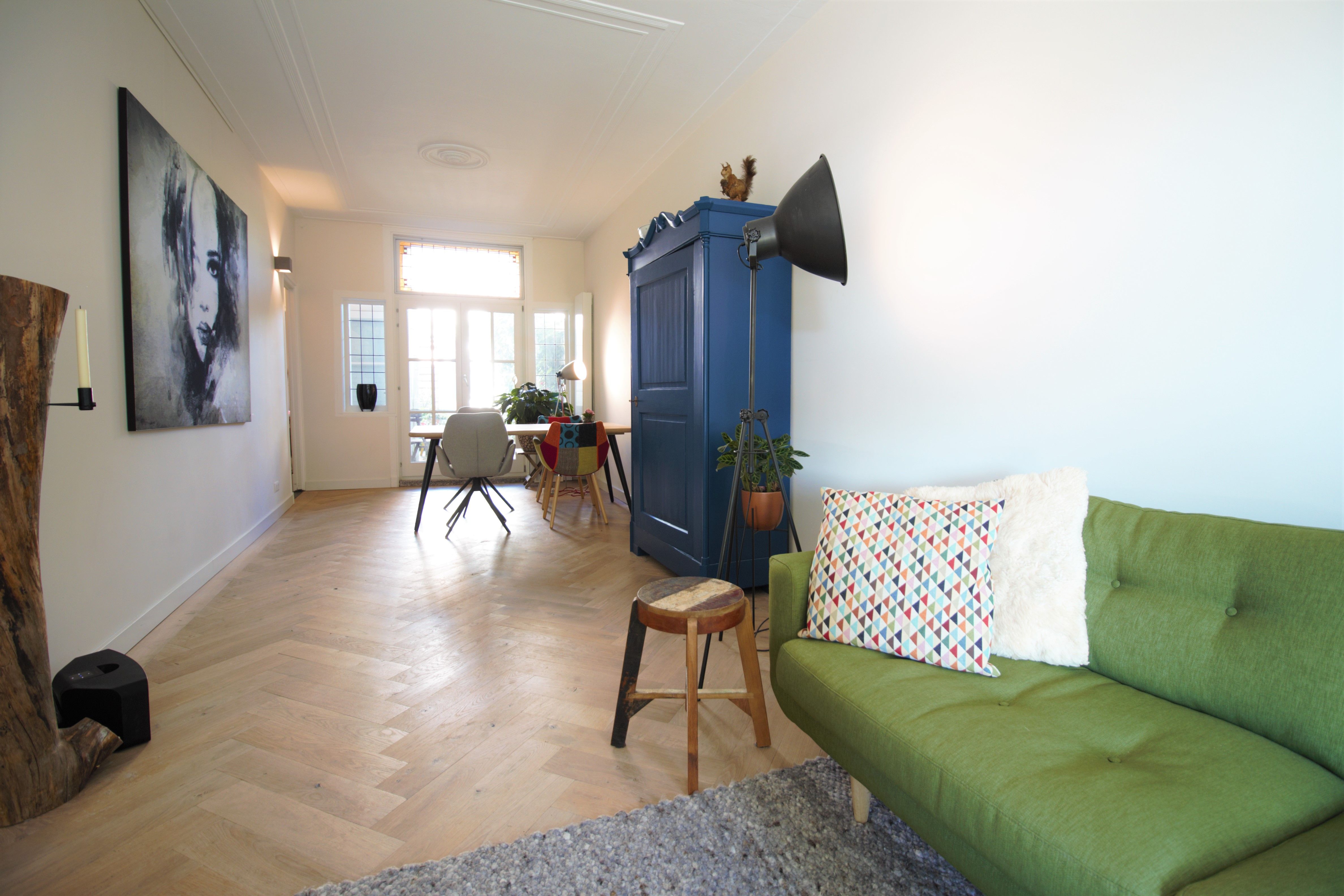 Door het hele appartement is de styling van hoge kwaliteit waardoor het een warm huiselijk gevoel krijgt. Door de mooie houten visgraatvloer en de glas-in-lood ramen heeft het een appartement een luxe en gezellige uitstraling.