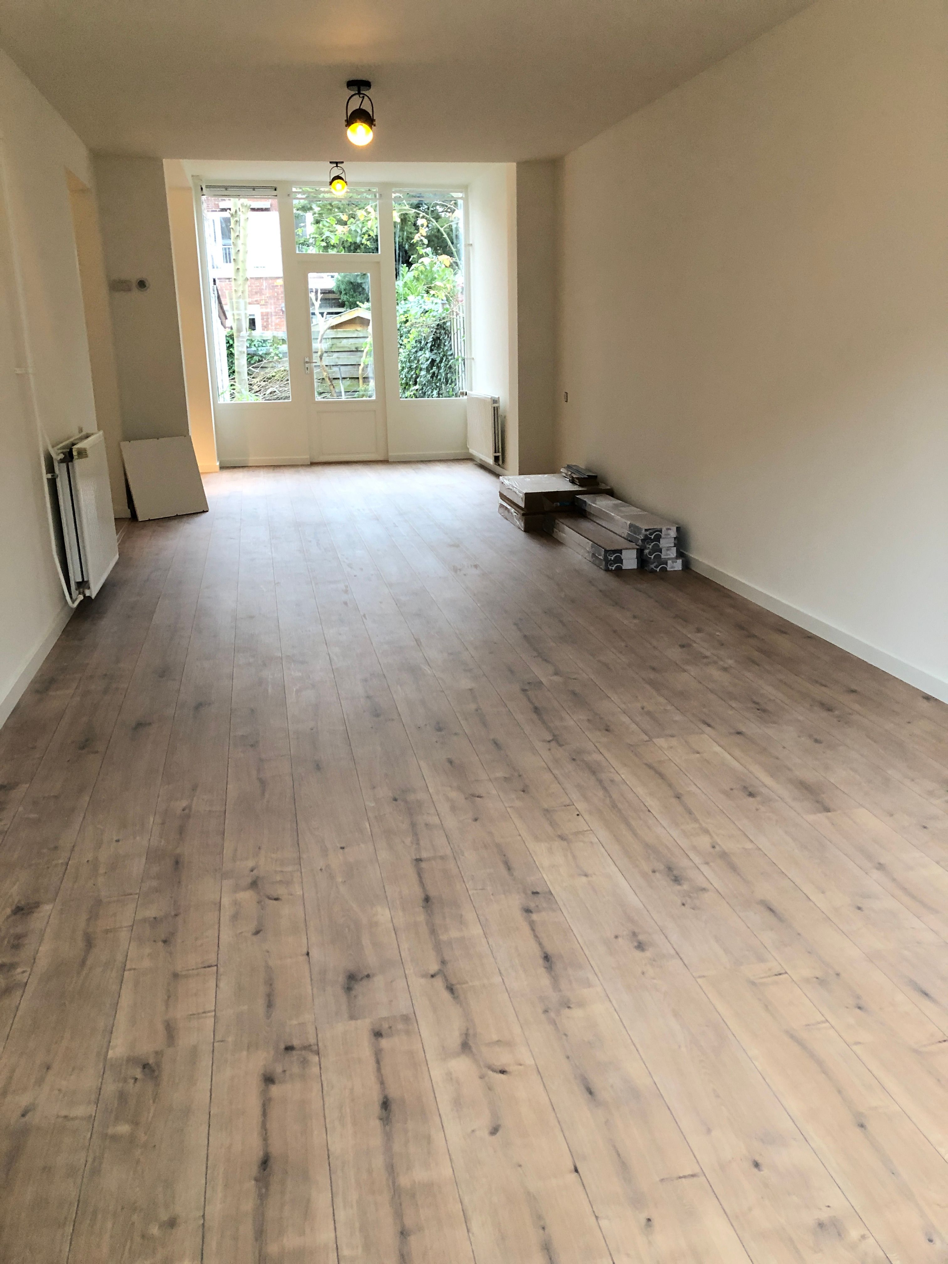 Door de hal kom je in de ruime woonkamer met openslaande deuren naar de tuin. Doordat er aan beide kanten van de kamer ramen zijn is er veel natuurlijk lichtinval. Via de woonkamer heb je toegang tot de keuken die voorzien is van een vaatwasser, koel/vries combi en een inductie kookplaat. Via de keuken heb je ook toegang tot de 2 slaapkamers, de tuin en de badkamer. Beide slaapkamers zijn gelegen aan de tuinzijde van het pand waardoor je heerlijk rustig kan slapen in deze bruisende wijk.